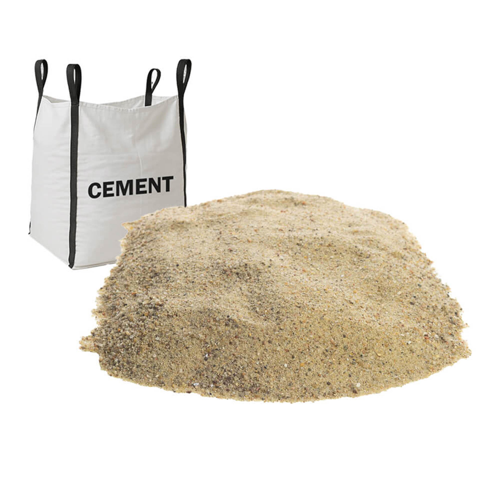 - Indhold: Støbesand / betonsand 0–4 mm + cement i separat bigbag